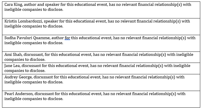 The disclosure information is intended to identify any commercial relationships and allow learners to form their own judgments. However, if you perceive a bias during the educational activity, please report it on the evaluation.